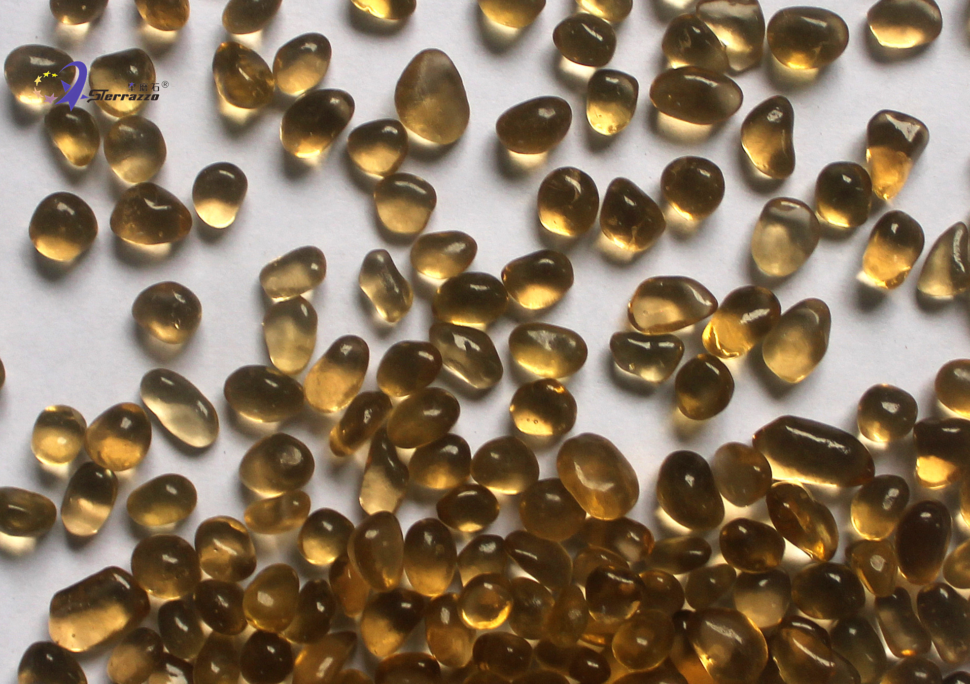 The glass sand is divided into colored glass sand and transparent glass sand. The transparent glass sand looks like white sugar, and the glass sand is used for glass surface decoration, such as glass, vase, lampshade and the like. The glass sand is fused together with the glass workpiece to form a concave and convex solid surface.