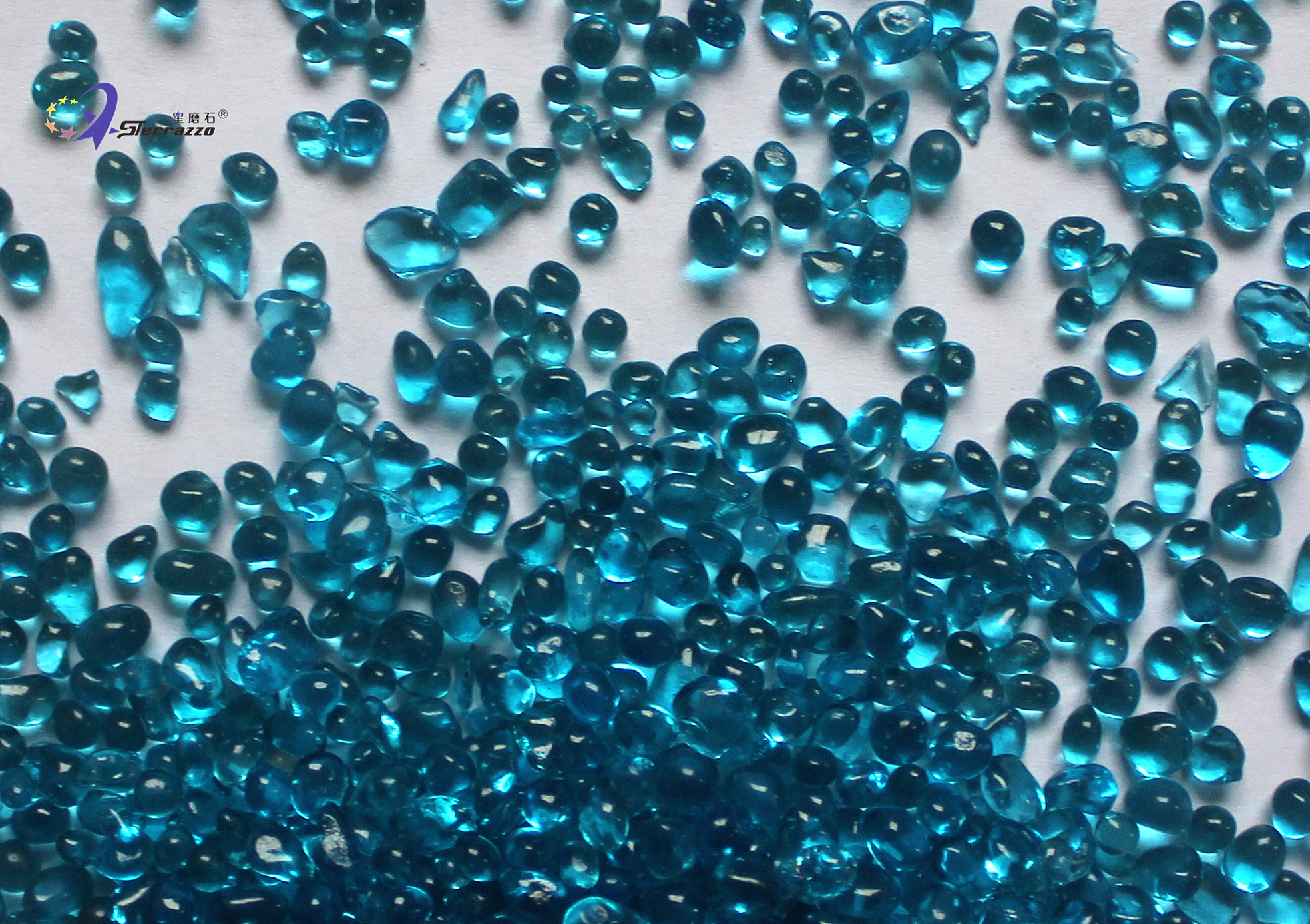 The glass sand is divided into colored glass sand and transparent glass sand. The transparent glass sand looks like white sugar, and the glass sand is used for glass surface decoration, such as glass, vase, lampshade and the like. The glass sand is fused together with the glass workpiece to form a concave and convex solid surface.